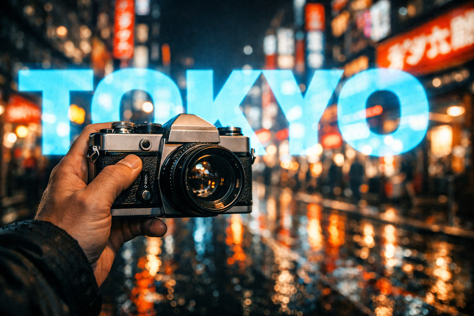 Text sits behind the subject, creating a striking layered visual effect